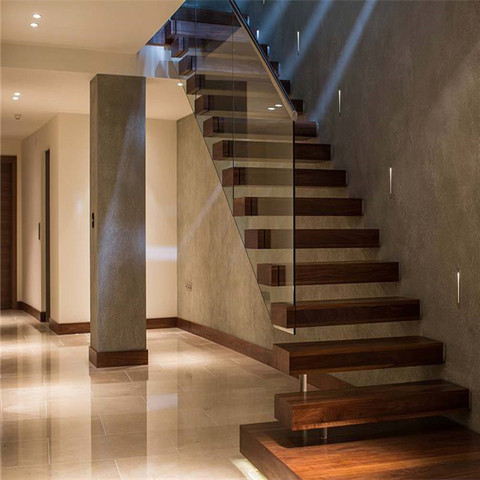 Prima Hot Selling Indoor Frameless Glass Railing Solid Wood Steps Build Floating Staircase Designs Stairs